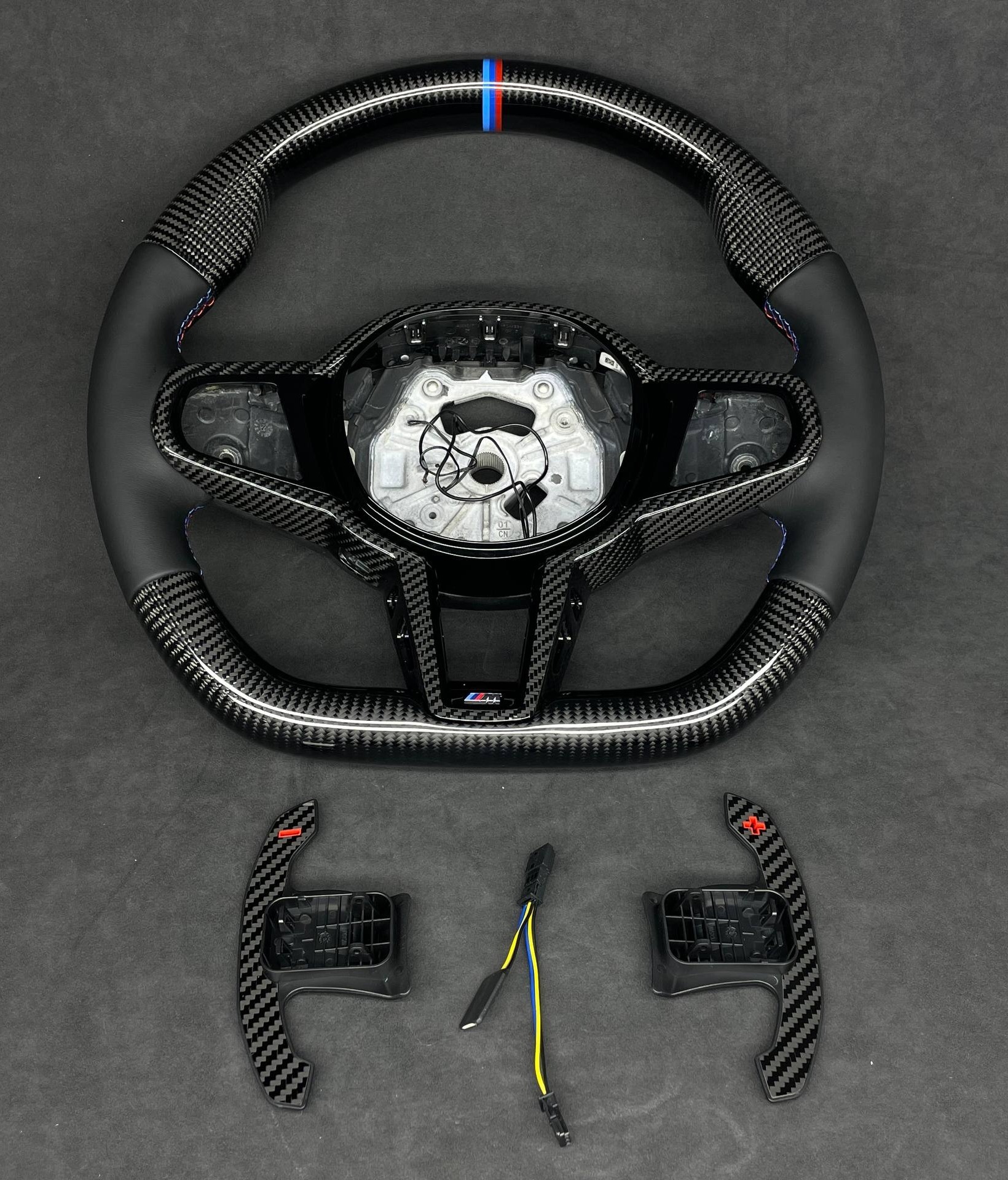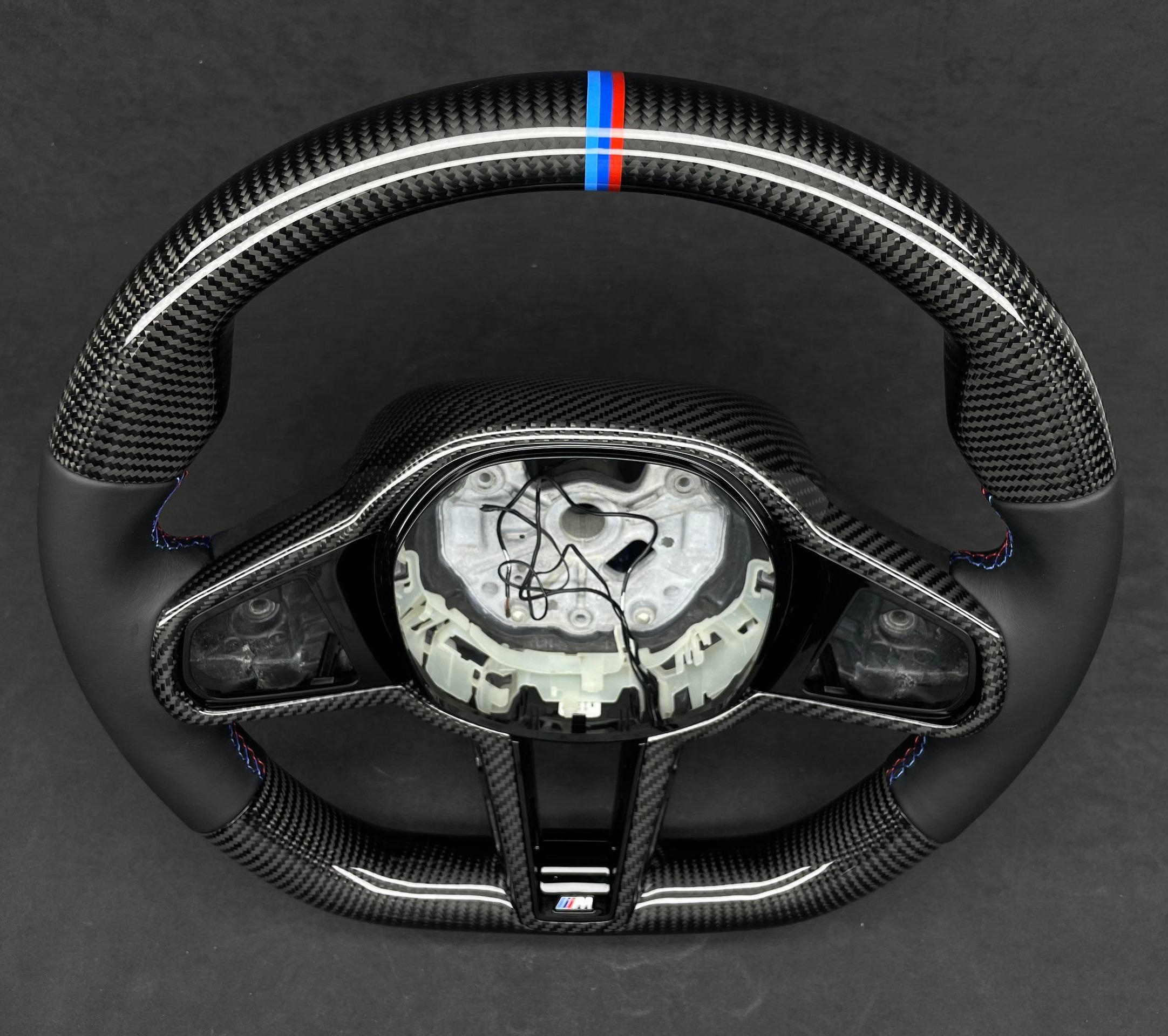 THE PRODUCTION OF CUSTOM STEERING WHEELS IS BASED EXCLUSIVELY ON ORIGINAL OEM STEERING WHEELS FROM OFFICIAL MANUFACTURERS (BMW, AUDI, MERCEDES, PORSCHE, ETC.). NO NEED TO SEND YOUR STEERING WHEEL