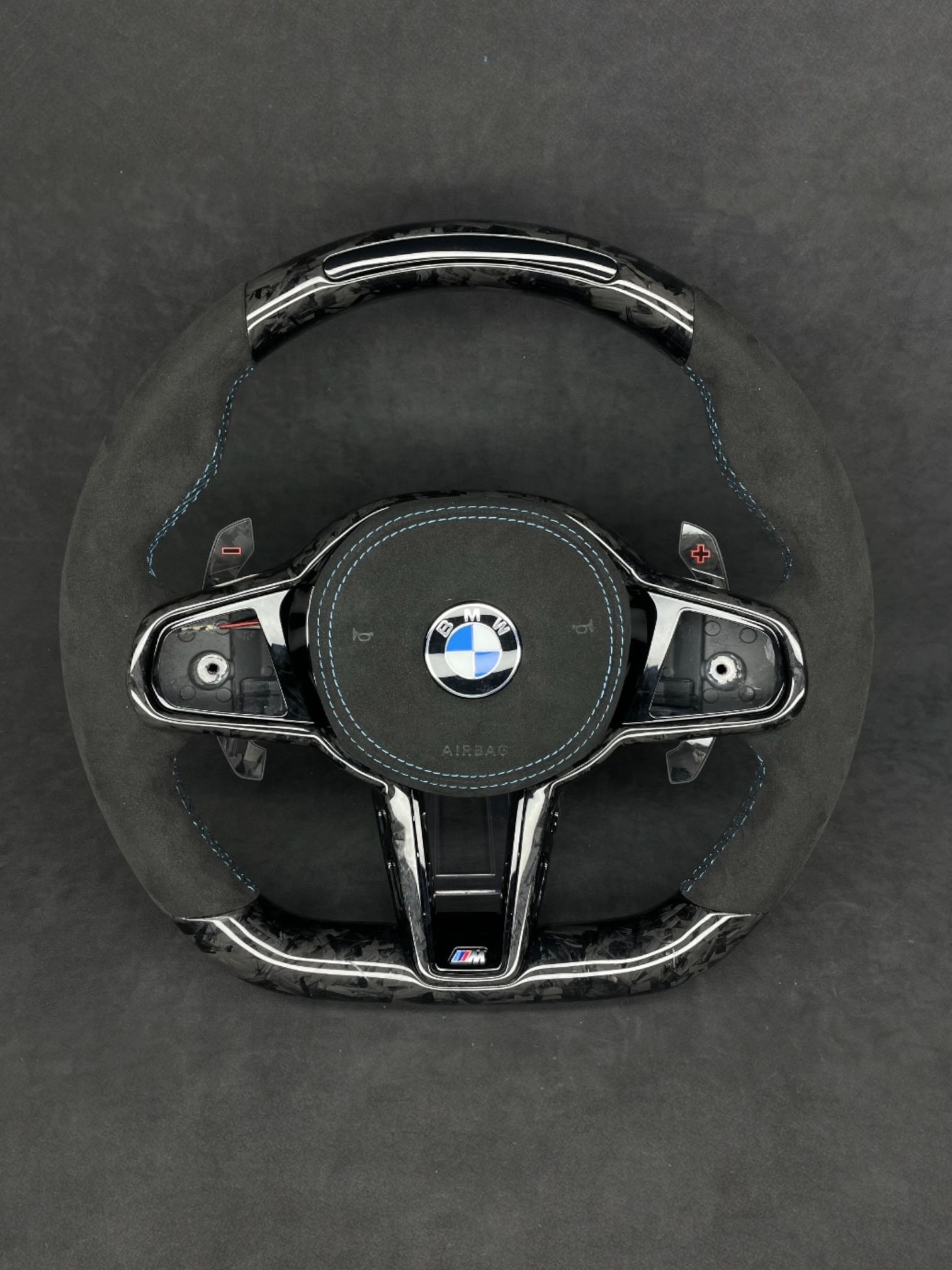 THE PRODUCTION OF CUSTOM STEERING WHEELS IS BASED EXCLUSIVELY ON ORIGINAL OEM STEERING WHEELS FROM OFFICIAL MANUFACTURERS (BMW, AUDI, MERCEDES, PORSCHE, ETC.). NO NEED TO SEND YOUR STEERING WHEEL